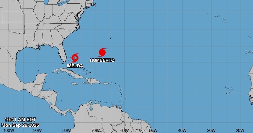 Según el más reciente parte del Centro Nacional de Huracanes (NHC), se espera que Humberto produzca un oleaje peligroso para Bermudas y la costa este de Estados Unidos esta semana, mientras que Imelda se está fortaleciendo cerca de las Bahamas.
