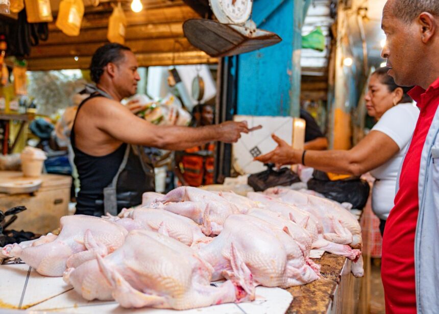 En el Merca Santo Domingo y en el Mercado de la Feria Ganadera, el pollo se comercializa actualmente entre 110 y 115 pesos la libra, un precio que muchos consideran difícil de sostener para el presupuesto familiar.