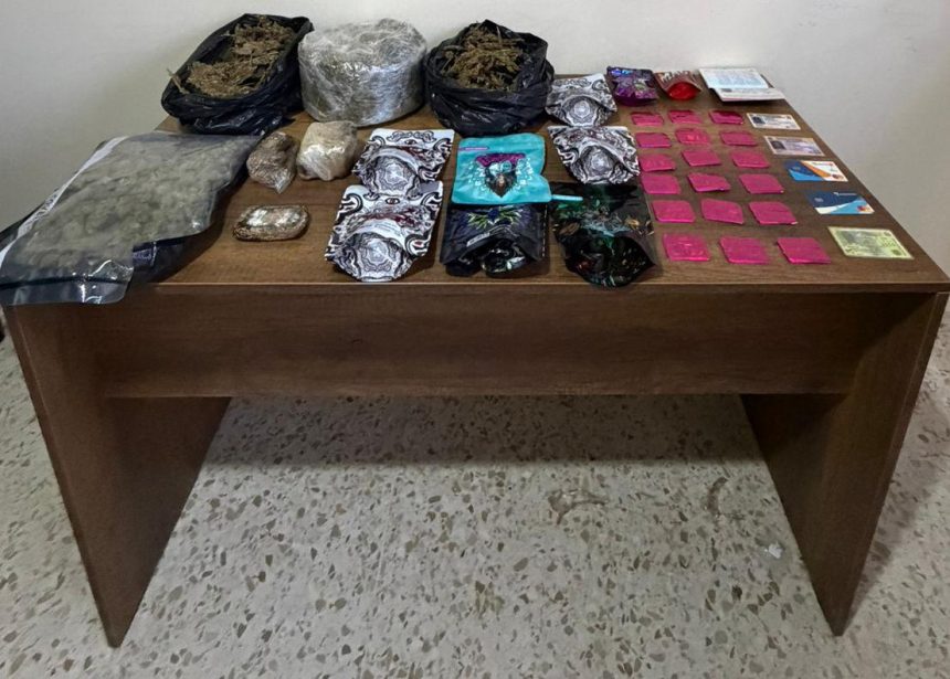 En el interior del inmueble, específicamente en un clóset del segundo nivel, fueron ocupadas 13 porciones de un vegetal presumiblemente marihuana, con un peso aproximado de 2,360 gramos, así como siete porciones de un material pastoso, presumiblemente hachís, con un peso cercano a 714.2 gramos.