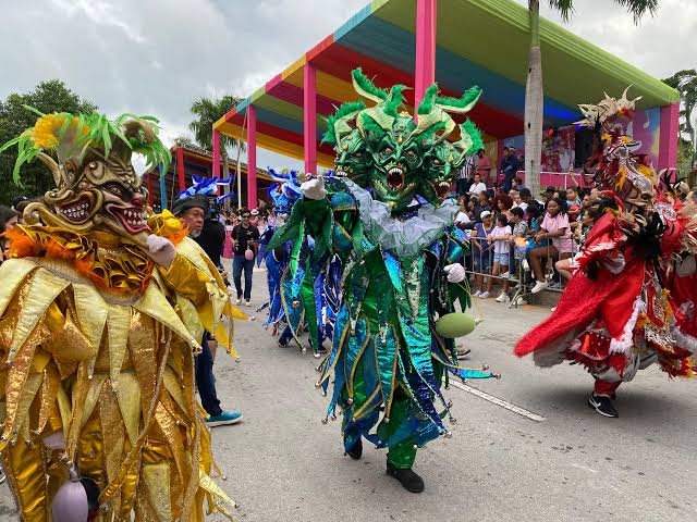 Entre las comparsas más emblemáticas se encuentra Las Musas de Punta Cana, integrada por mujeres de la comunidad que cada año confeccionan de manera colectiva sus trajes, inspirados en elementos representativos de la cultura dominicana.