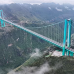 El Puente del Gran Cañón de Huajiang se ubica 625 metros sobre un río y un amplio desfiladero en la provincia sureña de Guizhou, donde también está el Puente de Beipanjiang, de 565 metros de altura, relegado ahora a ser el segundo más alto del mundo.
