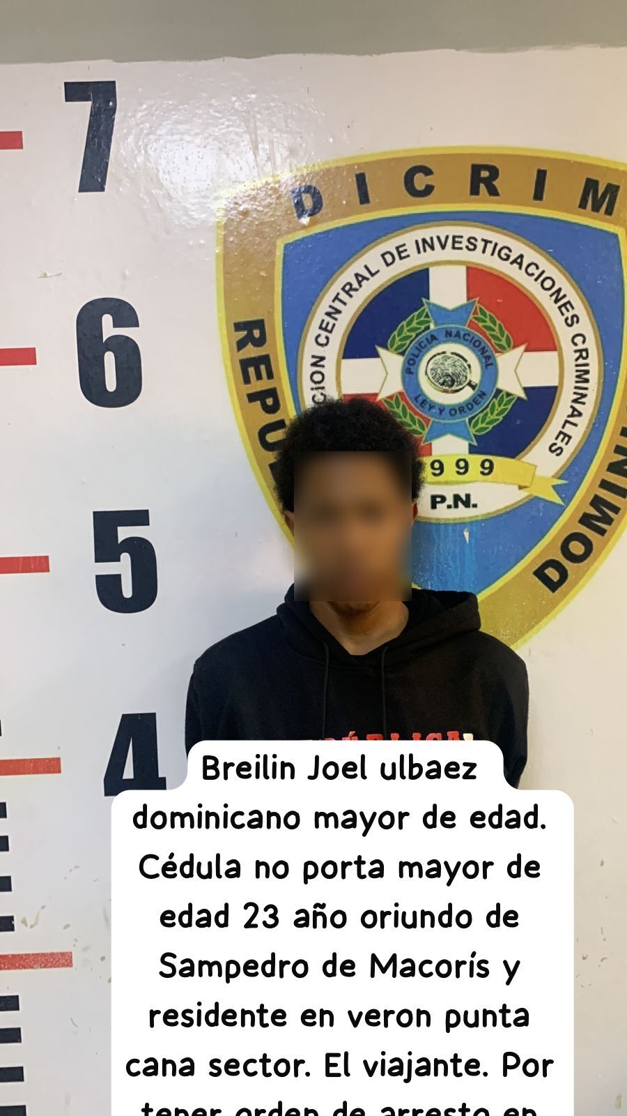 Fue arrestado Yensi Cedeño Pérez, dominicano de 39 años, quien era requerido por la orden de arresto No. 01705-2025, emitida por la magistrada Mary C. Castillo Germán, del Juzgado de la Instrucción del Distrito Judicial de La Altagracia.