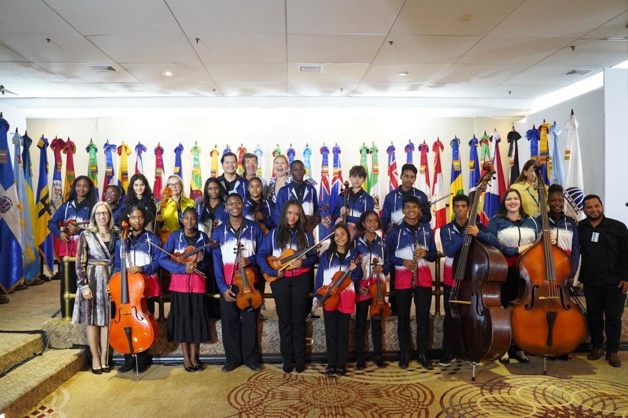 Como parte del programa cultural del encuentro, jóvenes y niños de El Sistema Punta Cana presentaron un Ensamble de Cuerdas con violines, violas, cellos y contrabajos, bajo la dirección del maestro Omar Suniaga. Les acompañaron en comitiva, Kalani Paredes, subdirectora de Orquesta, Manuel Marcano, director académico, Romina Aschpurwis, directora Ejecutiva, Flavio Di Lorenzo y Marc Van Wynsberghe, como asesores.