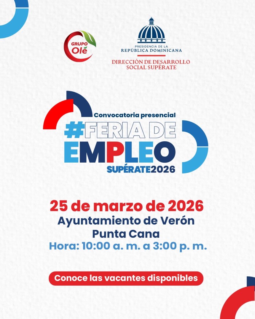 Verón-Punta Cana. Como parte de las iniciativas para fomentar el acceso al trabajo, la Supérate, a través de su Dirección de Desarrollo Social, anunció la realización de la Feria de Empleo Supérate 2026, en colaboración con la empresa Hiper Olé.