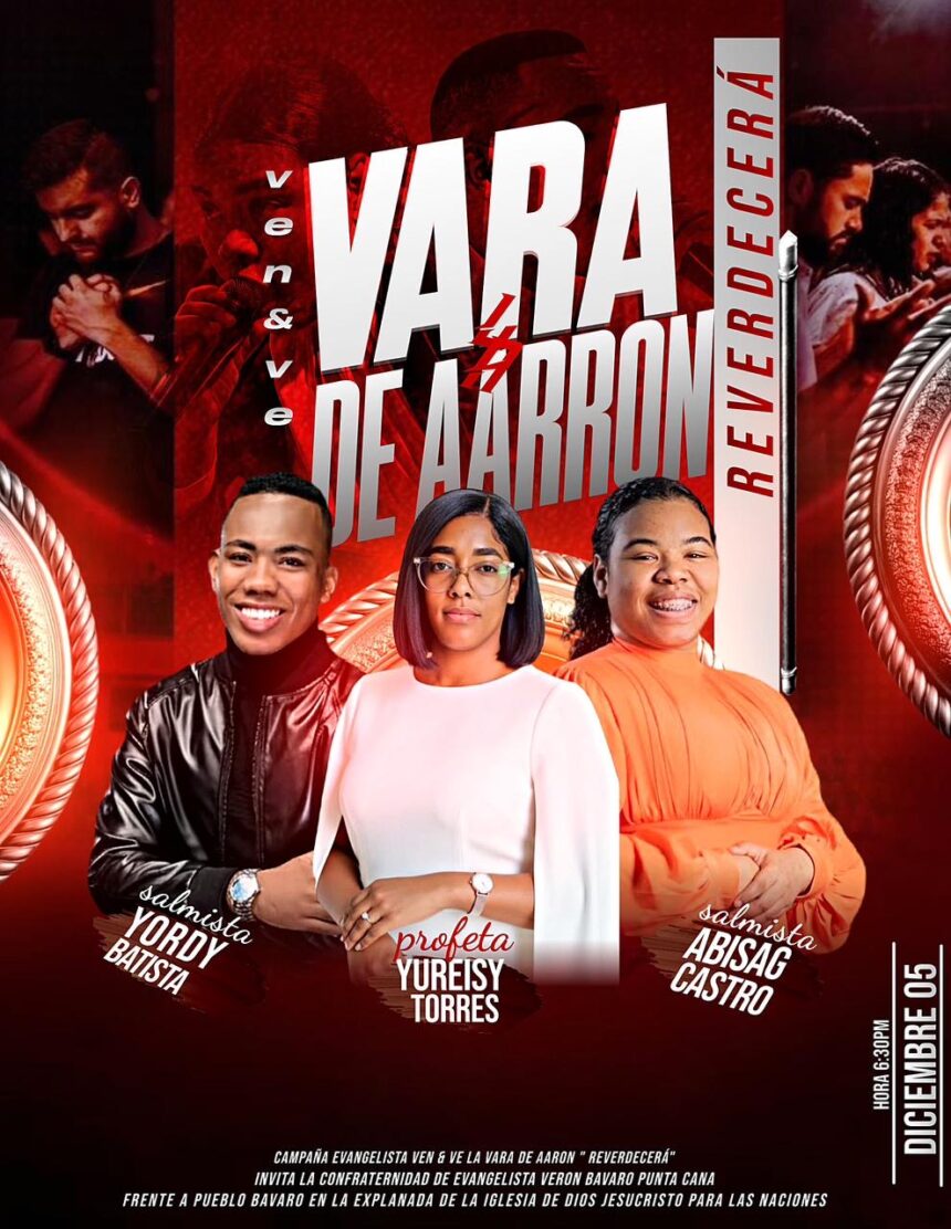 La Confraternidad de Evangelistas Verón–Bávaro–Punta Cana anunció la realización de la campaña evangelística “Ven & Ve: La Vara de Aarón Reverdecerá”, un encuentro espiritual que reunirá a la comunidad para una noche de adoración, palabra profética y avivamiento.