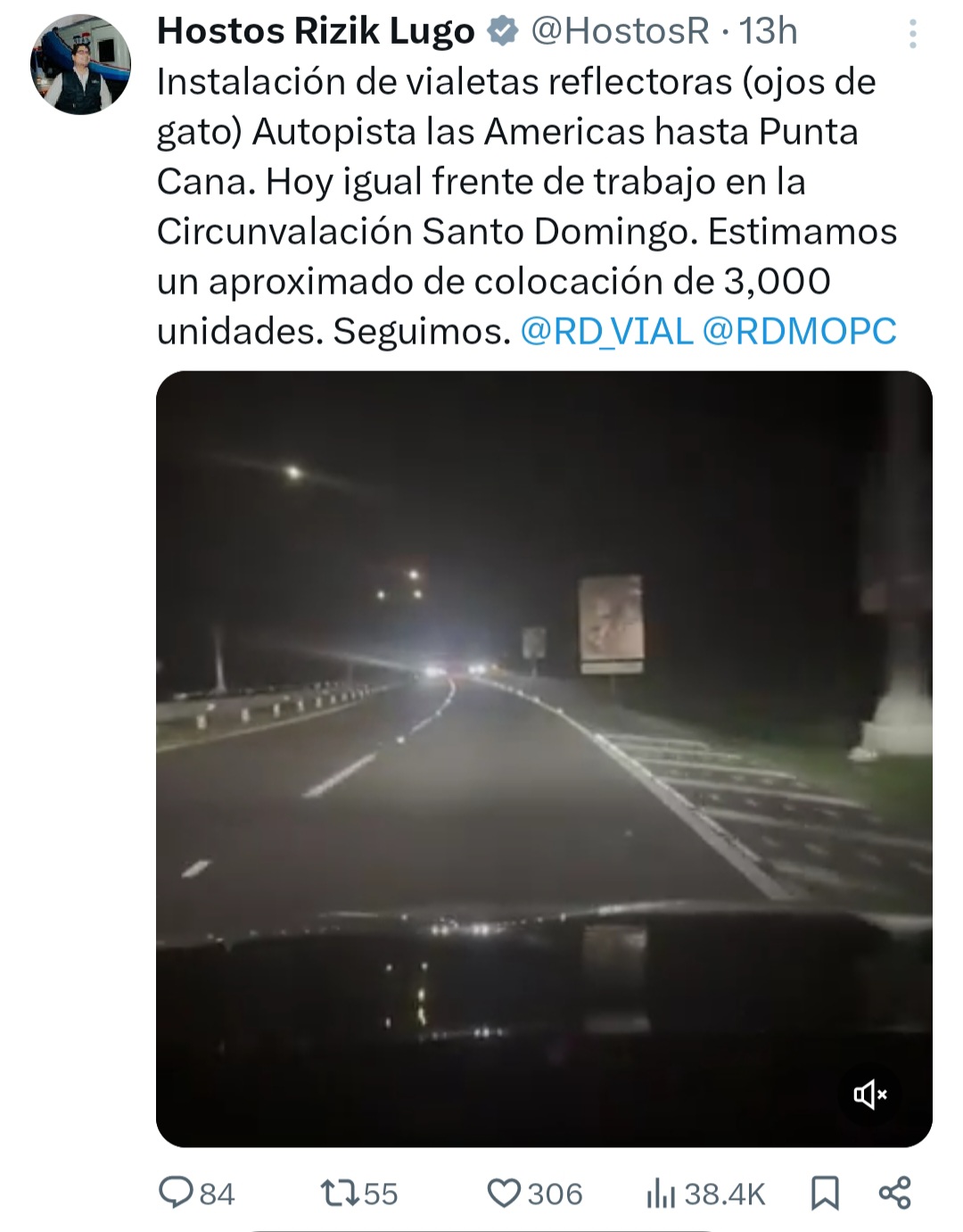 Asimismo, informó que ayer se desarrolló un frente de trabajo similar en la Circunvalación Santo Domingo, como parte de los esfuerzos de RD Vial por modernizar la señalización y reforzar la seguridad en las principales carreteras nacionales.