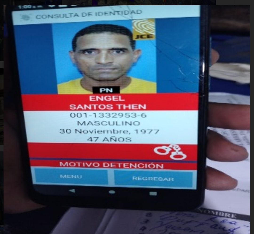 En el mismo operativo fue apresado Engel Santos Then, dominicano de 47 años de edad, quien figuraba como prófugo de la justicia.