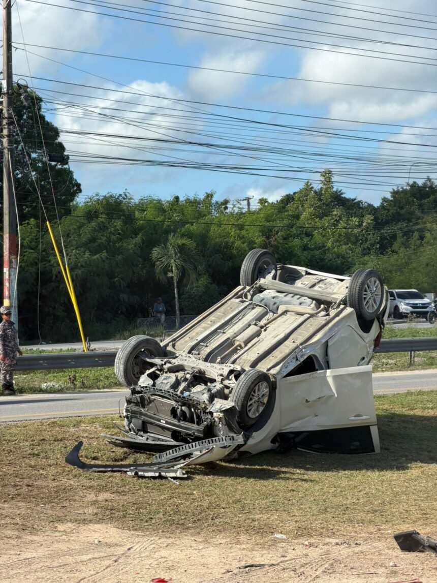 La afectada fue identificada como Escarline Ureñas, supervisora de una tienda en un hotel de Bávaro-Punta Cana. Según los primeros reportes, Ureñas perdió el control de su vehículo, un Kia Picanto blanco, lo que provocó que este volcara en plena vía.