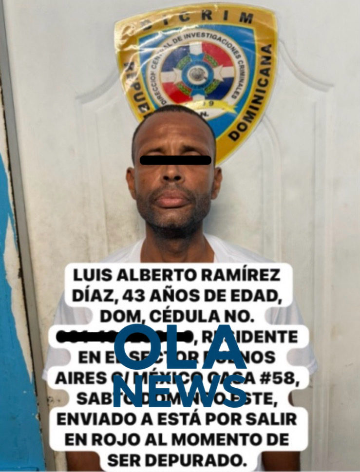 Bávaro, Punta Cana.- Luego de permanecer tres años prófugo de la justicia, fue detenido el nombrado Luis Alberto Ramírez Díaz, dominicano, de 43 años de edad, residente en Santo Domingo Oeste , tras ser depurado en el sistema de la Policía Nacional, el cual arrojó una alerta de captura en su contra.