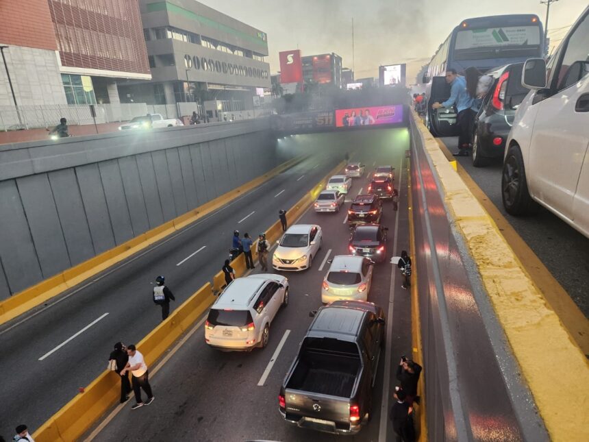 Un automóvil se prendió en llamas la mañana de este martes dentro del túnel de la avenida 27 de Febrero, en sentido oeste-este, lo que provocó el cierre temporal del tránsito y un fuerte congestionamiento en la zona.