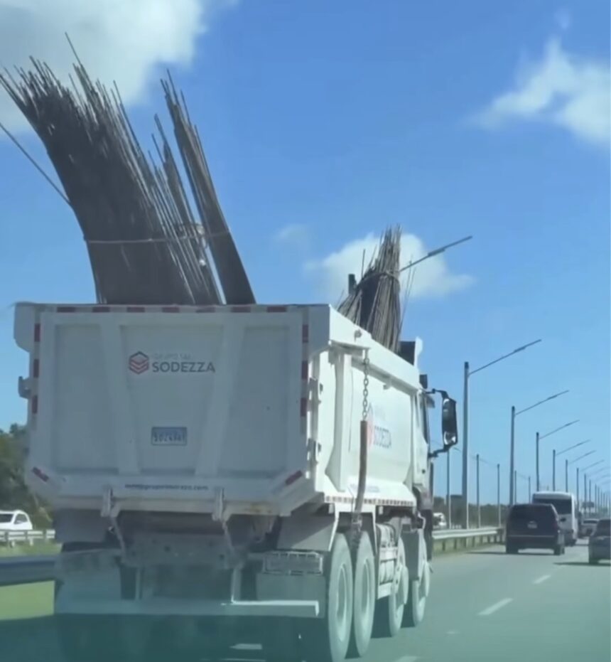 Bávaro, Punta Cana.- La Dirección General de Seguridad de Tránsito y Transporte Terrestre (DIGESETT) informó que logró ubicar y fiscalizar al conductor de un camión perteneciente a la empresa Sodezza, luego de que fuera captado en video transitando de manera peligrosa con atados de varilla en el Bulevar Turístico del Este, en Bávaro-Punta Cana.