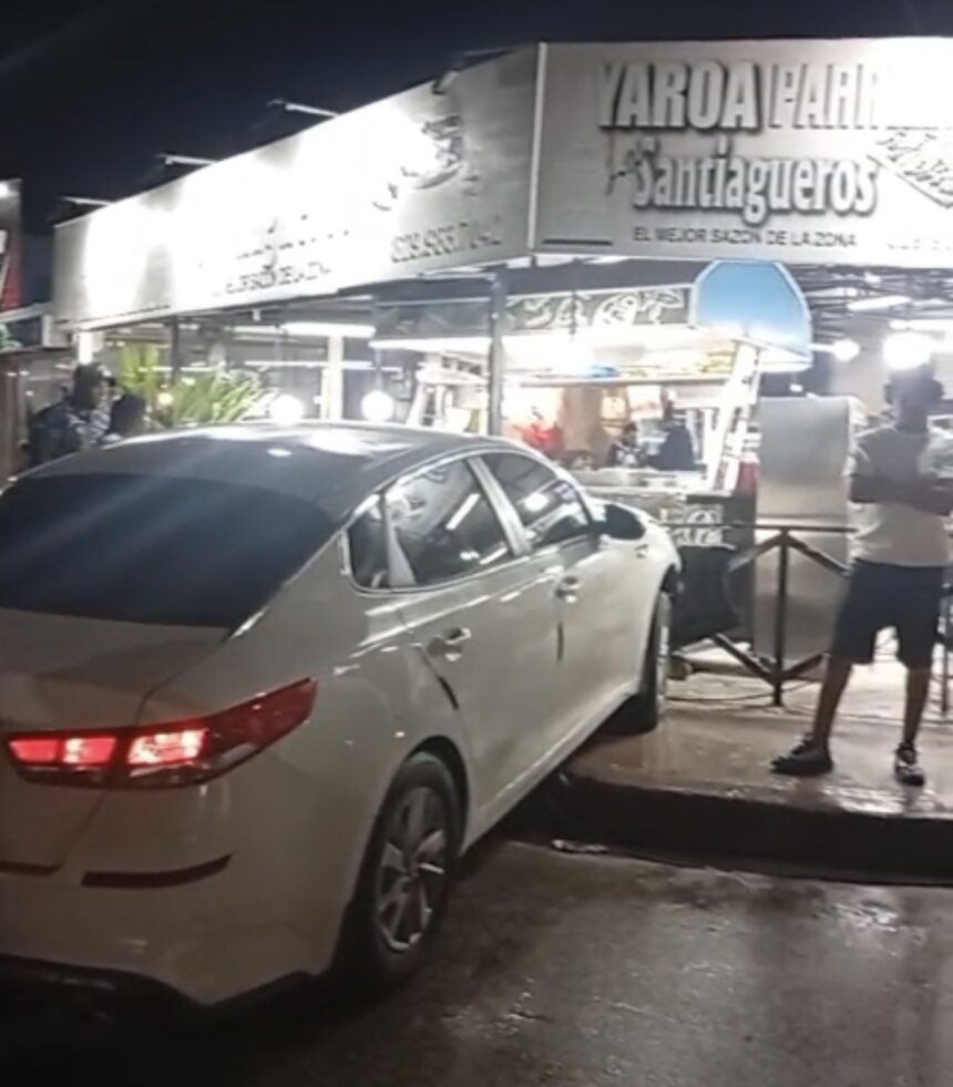 Verón–Punta Cana.- Un vehículo perdió el control en horas de la madrugada de este viernes y se estrelló contra la feria de comida Los Santiagueros, ubicada en la entrada de María Verón, provocando daños materiales.